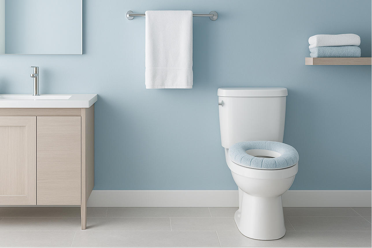 Genieße den Komfort eines weichen, waschbaren Sitzbezugs, der Wärme und Stil in dein Badezimmer bringt.
